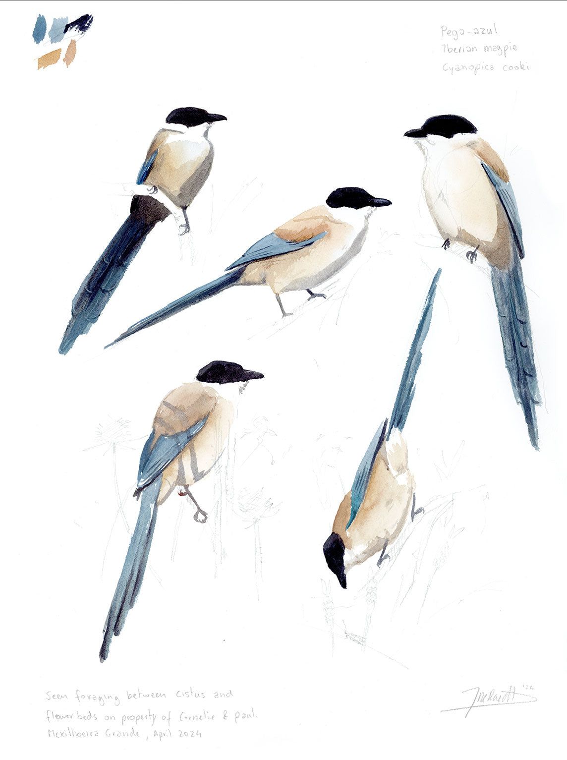 Iberian Magpies— 30x40cm, watercolours
