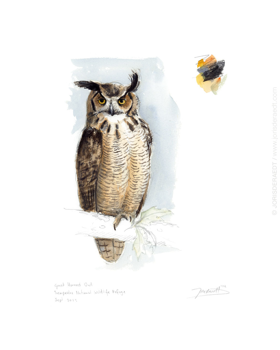 Great Horned Owl— 40x30cm, watercolours
